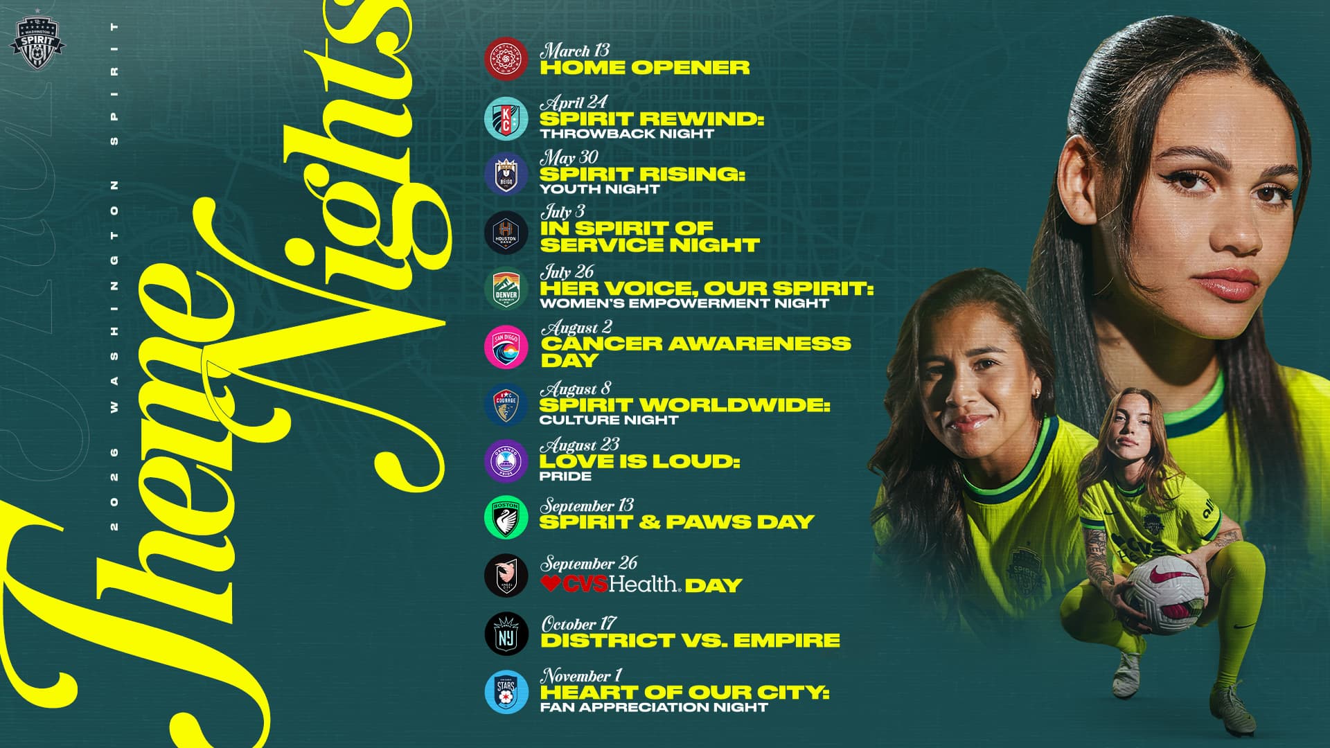 The 2026 season theme nights have been announced! Read below for more information on what to expect for home matches this season.
